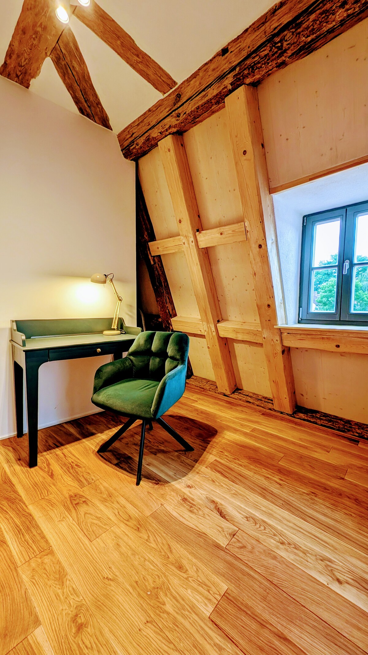 ausgestattet. Das große Schlafzimmer verfügt weiter über einen eigenen Ankleideraum